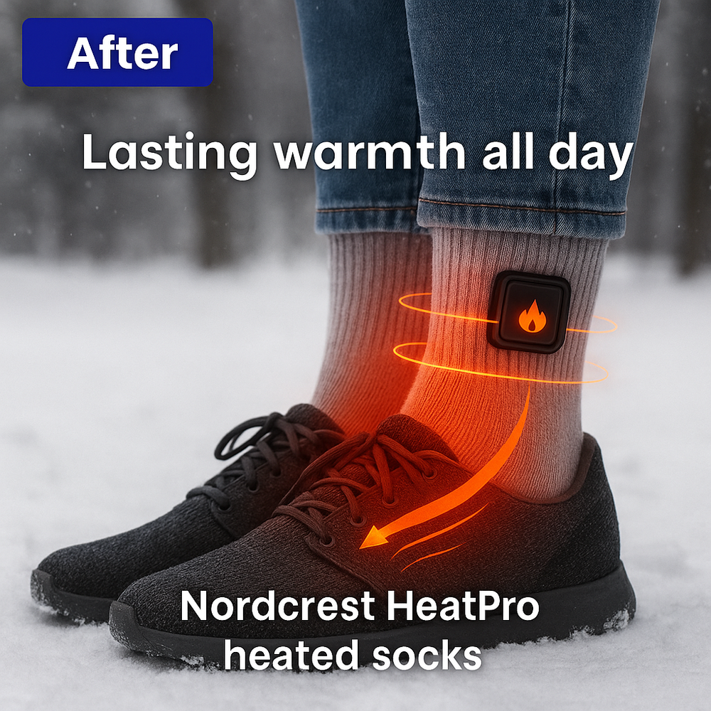 Nordcrest HeatPro socks are made for skiers, delivery drivers and anyone who actually has to be out in the cold—from early dog walks to long shifts on icy streets. Hidden heating elements wrap around your toes and instep, with three adjustable heat levels to keep circulation flowing and ease stiff, aching feet. Soft, breathable fabric and a windproof outer layer lock in warmth without bulk—just tap the button and let HeatPro keep your feet comfortably warm all day.