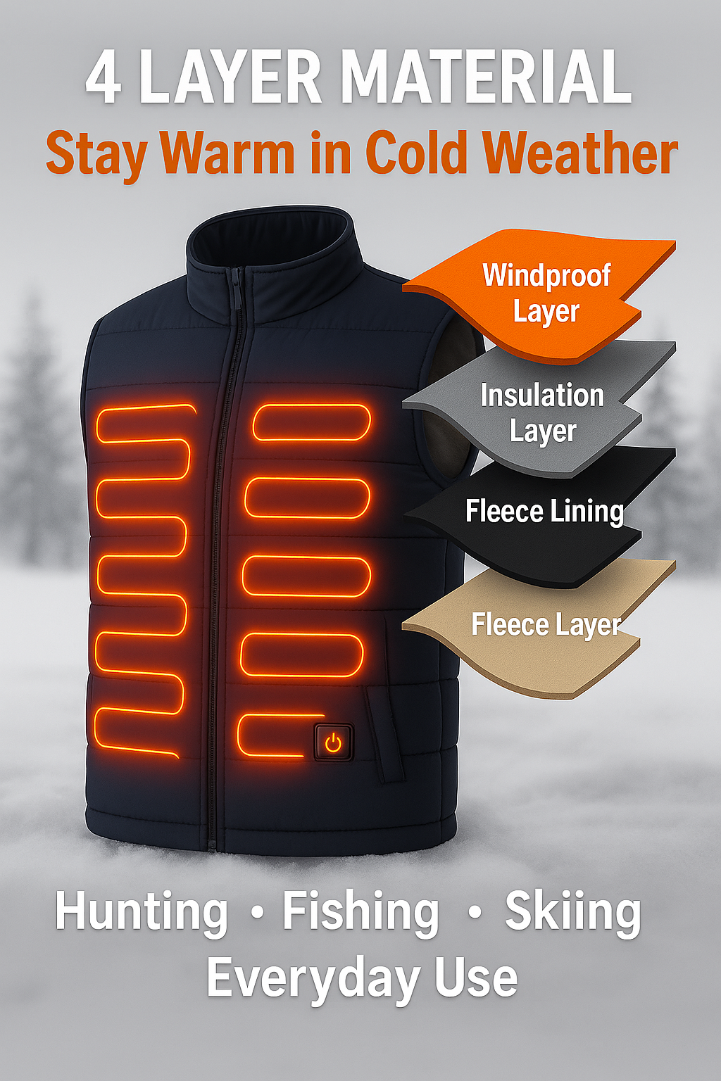 HeatPro Vest uses dense insulation, a soft inner lining and a waterproof outer shell to lock in heat while staying breathable. Every layer is chosen to feel comfortable over a hoodie or base layer and to stand up to real winter wear, season after season.